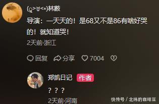 还有网友趁机调侃,是68又不是86,有啥好哭的,就知道哭,郑凯连打三个“?”回复对方,也是有些搞笑。