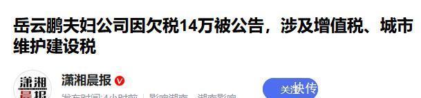这家夫妻公司被公告,有两项税款一直没有缴纳,一个增值税,还有一个城建税,共计14万元。 要知道,岳云鹏走红多年,上综艺拍戏,还有开演唱会说相声等,每个都能带来不菲的收入。
