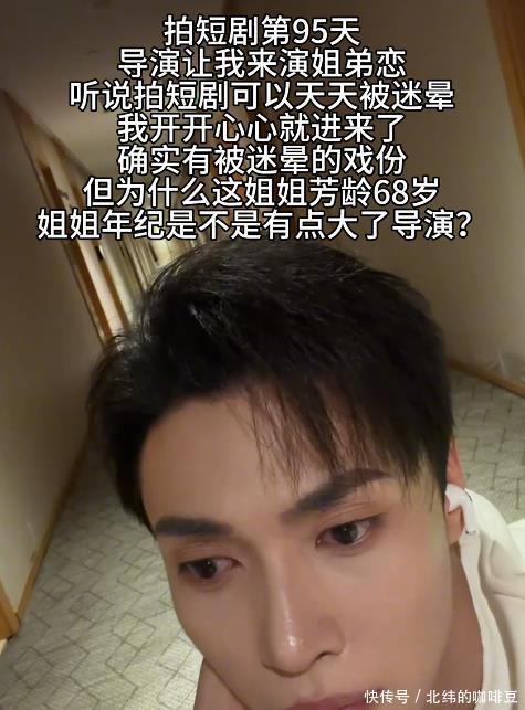 姐弟恋 一个38岁的男演员,被导演要求和68岁的女演员出演姐弟恋,相差30岁,真是越来越看不清演艺圈了。 11月24日,短剧演员郑凯发视频,声称导演让他演一个姐弟恋短剧,还有被迷晕的戏份,他听到剧情还挺激动的,二话没说就答应了。